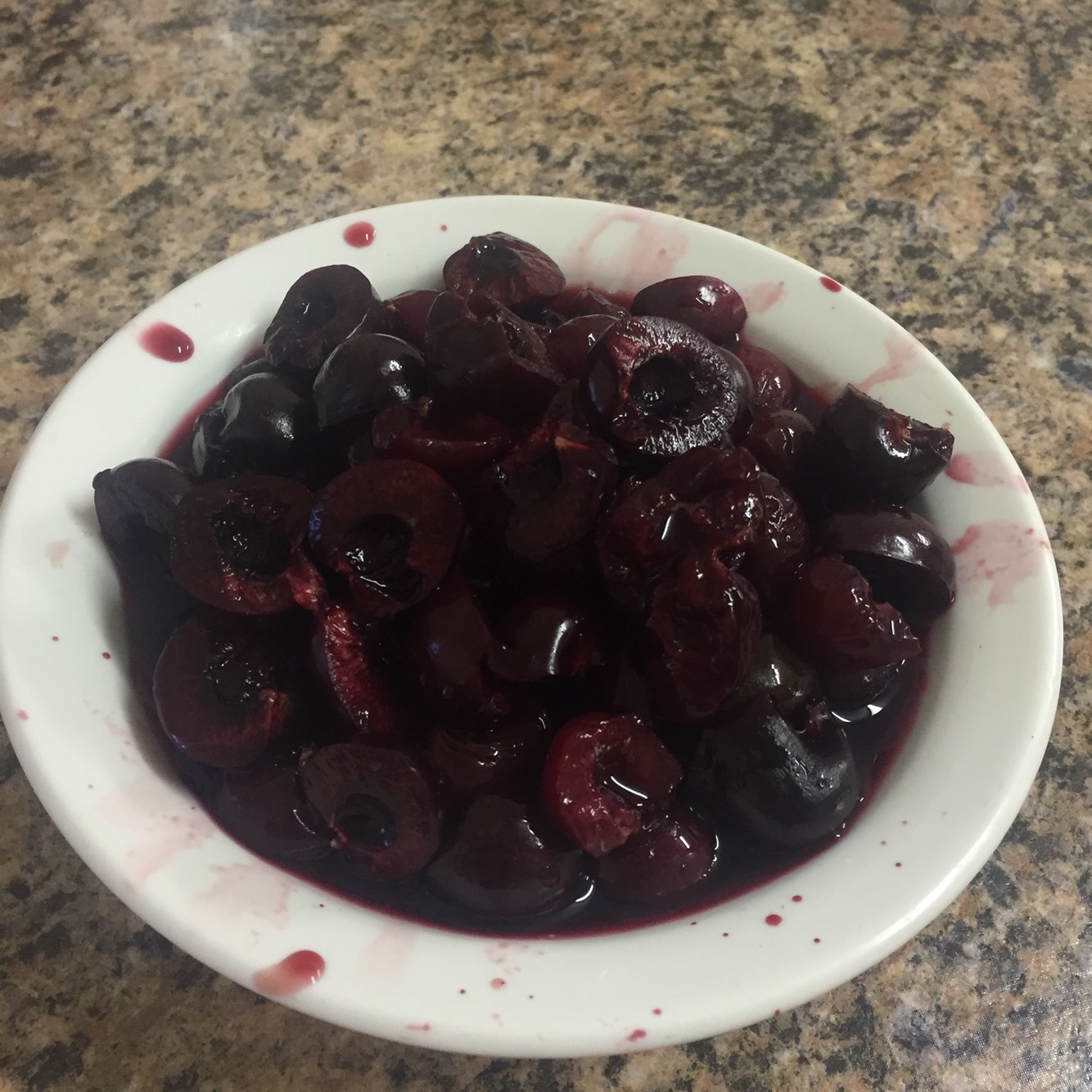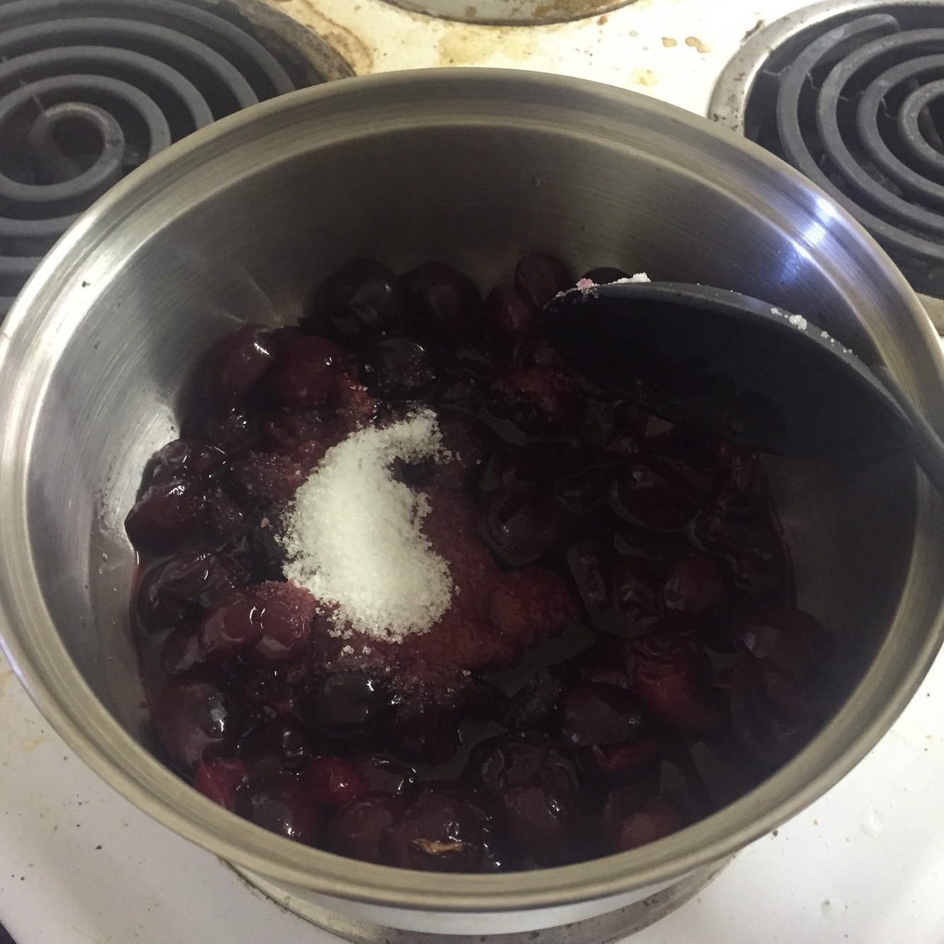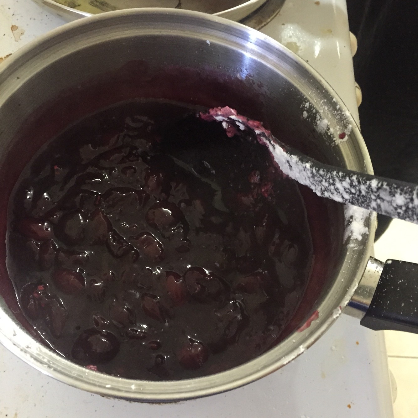 2. 用小鍋小火將櫻桃煮成汁,其間不用加水 櫻桃自己會出汁