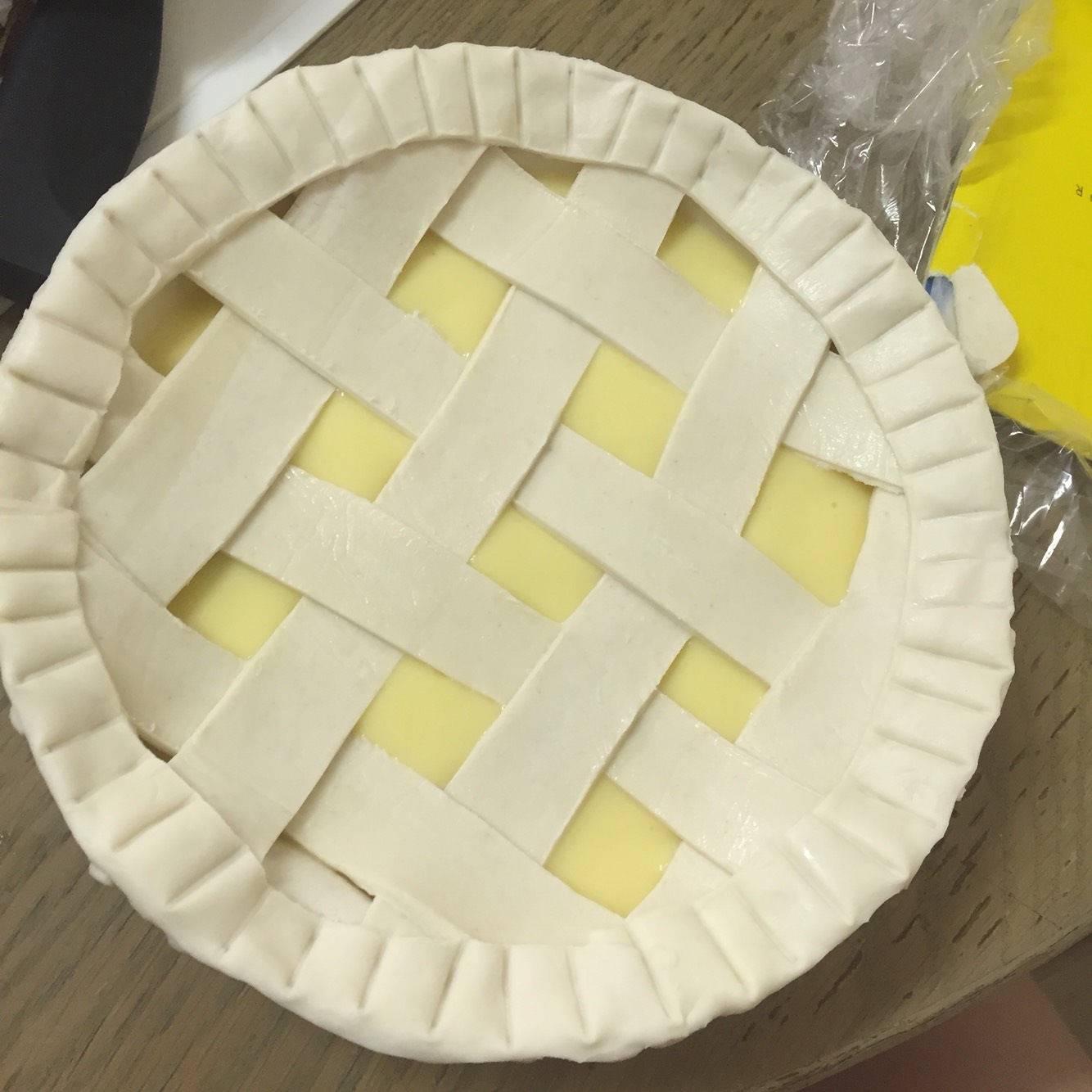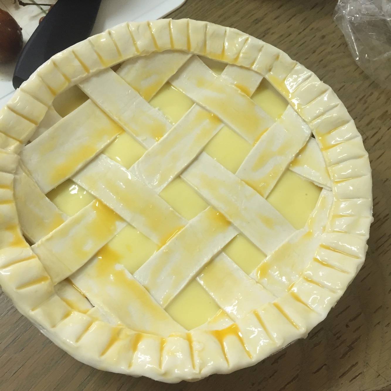 7. 如圖放面層酥皮,之後揸蛋漿同灑糖係蛋漿面