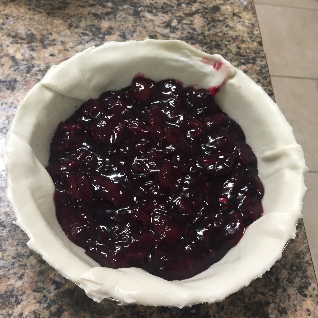 5. 將冷凍酥皮 放入模中,加入櫻桃醬放雪櫃冷藏一小時